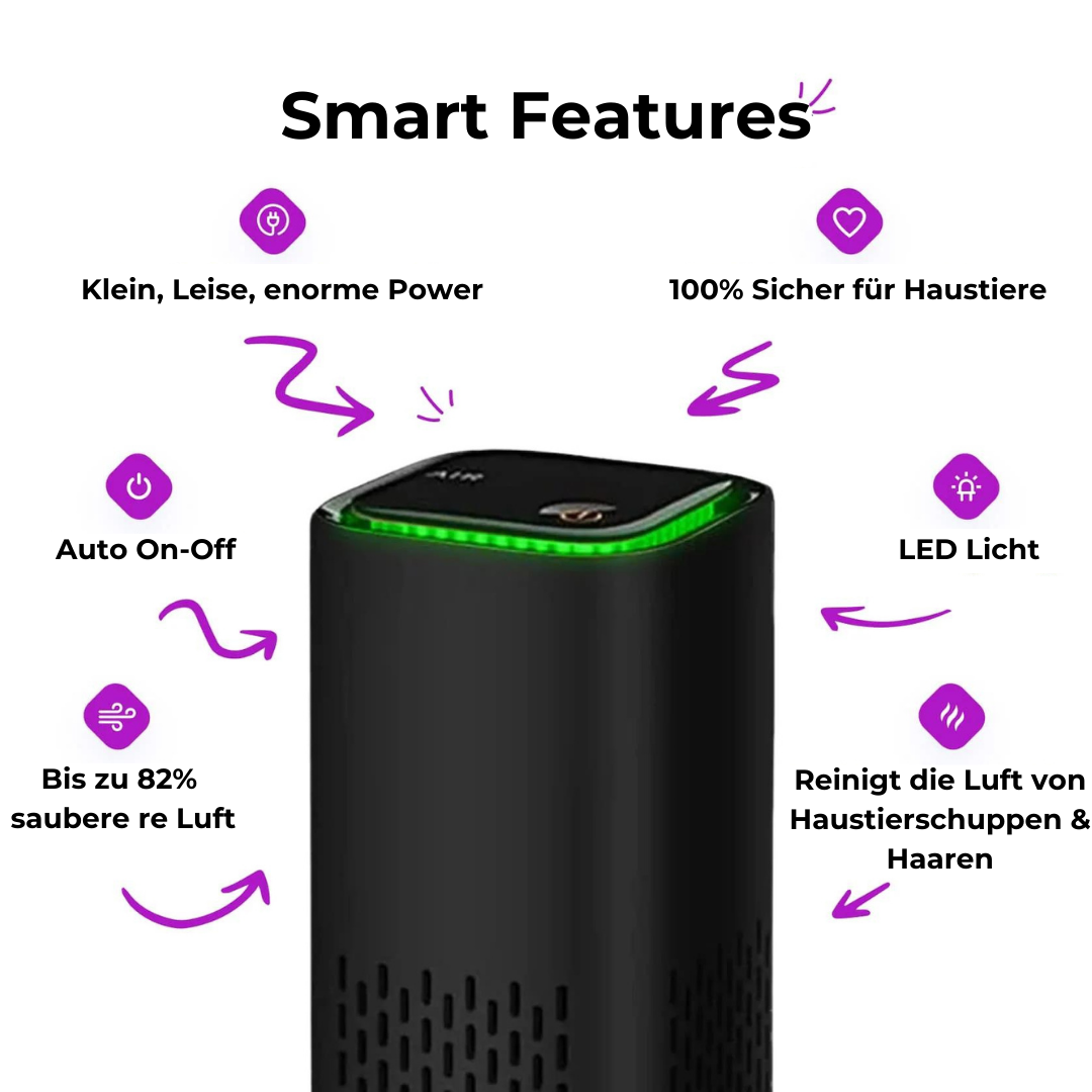 reinigt die Luft und zielt sicher auf Haustierallergene ab, sodass du und deine Familie sich nicht mehr mit verstopften Nasen und Niesen herumschlagen müssen.